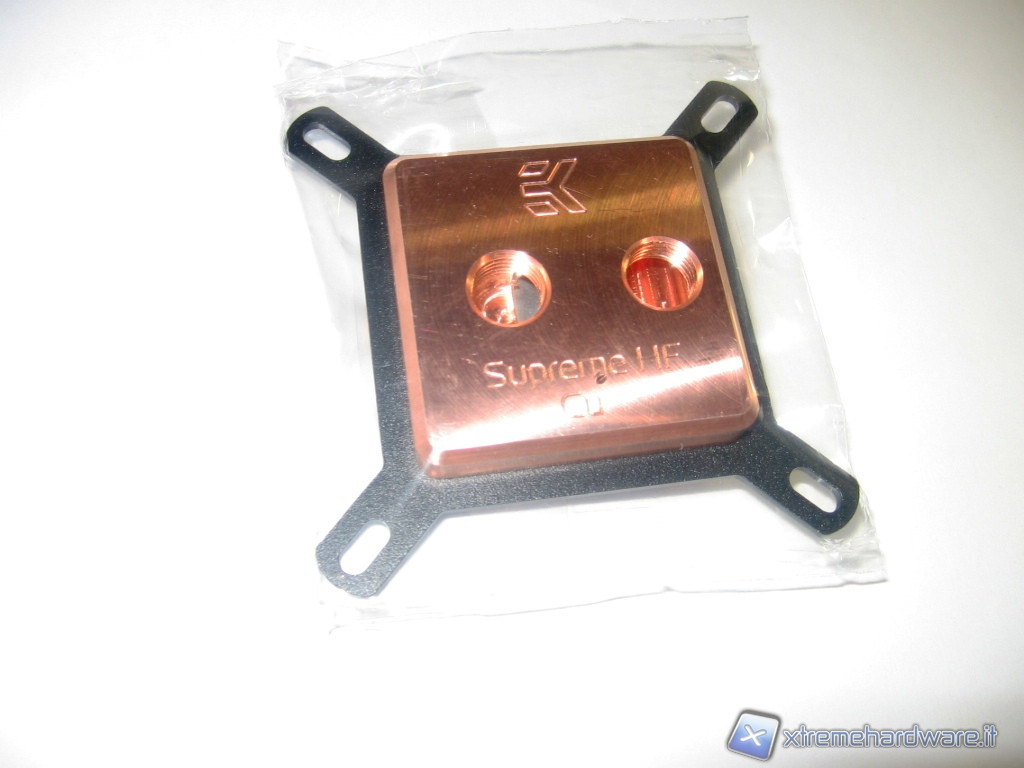 A seguire, troviamo il waterblock protetto da una spugna poliuretanica che lo protegge dagli urti oltre ad essere racchiuso in una bustina trasparente atta a proteggerlo dagli agenti atmosferici sempre pronti ad intaccare il rame ossidandolo. E’ presente inoltre la classica bustina che racchiude la viteria e le staffe di fissaggio e per finire una confezione di pasta termoconduttiva di qualità, parliamo della Artic Cooling MX-2. Dalle foto potete vedere quanto descritto.