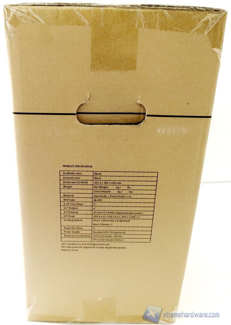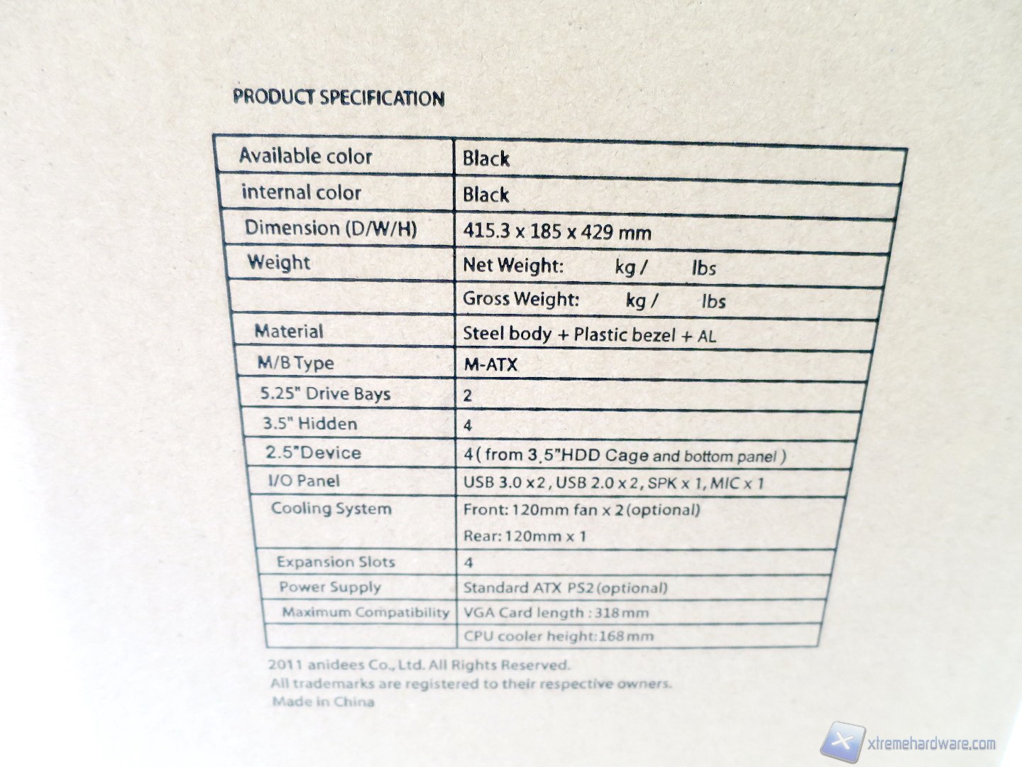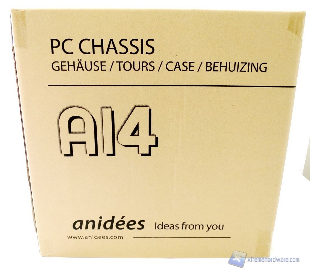 La confezione dell’Anidees AI4 è realizzata in cartone. Nella parte frontale ed in quella posteriore vengono riportate alcune informazioni come il modello del case ed il brand.