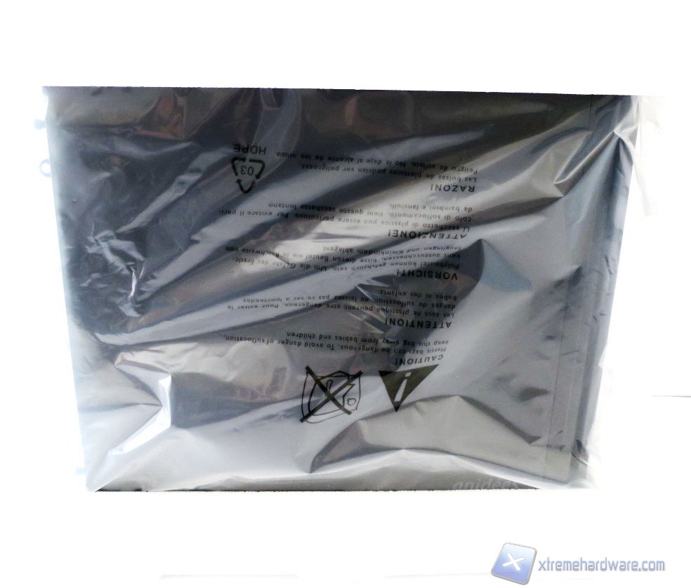 Il case è ospitato in una busta in plastica trasparente e sorretto da due sagome in polietilene che prevengono eventuali urti o danni durante il trasporto.