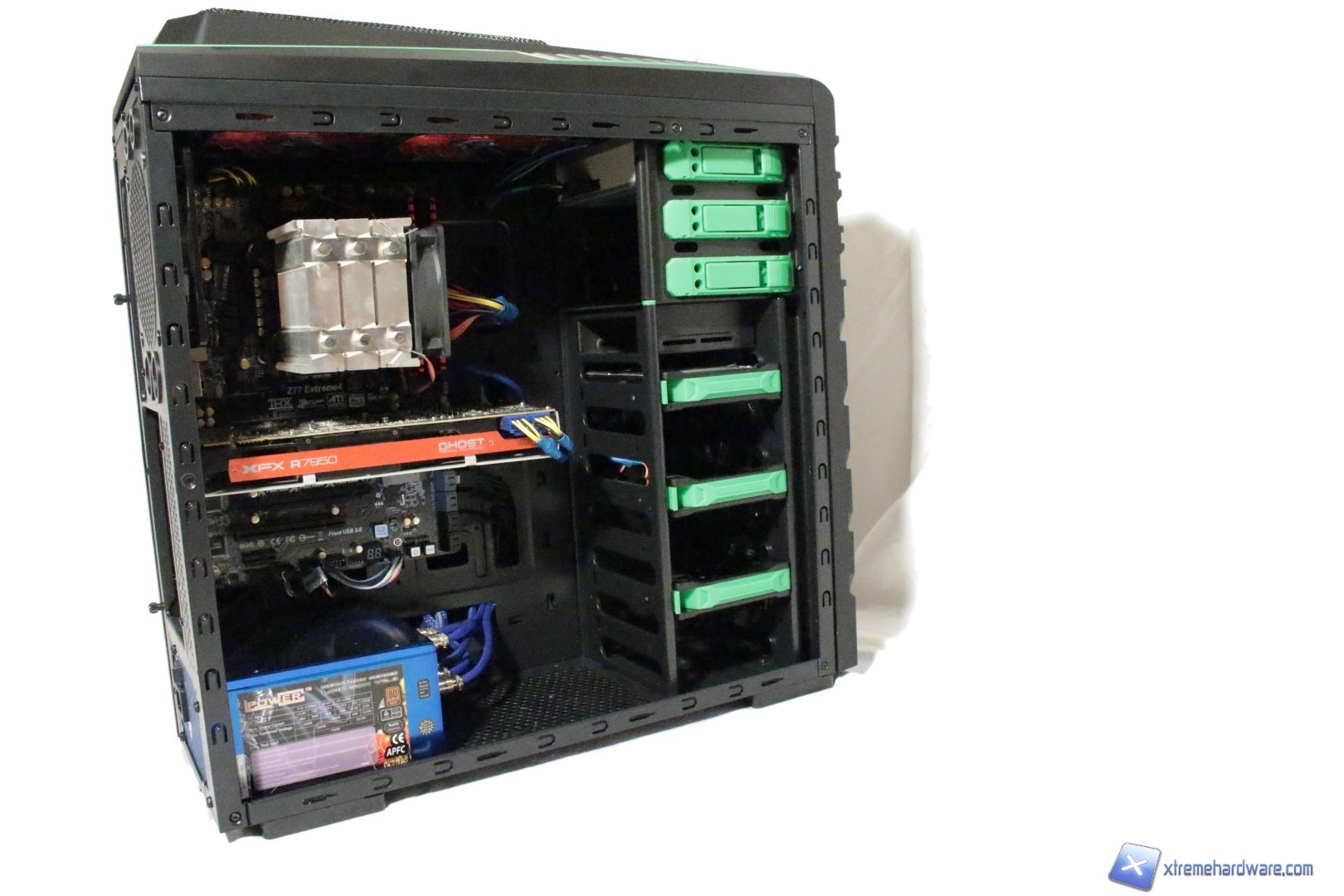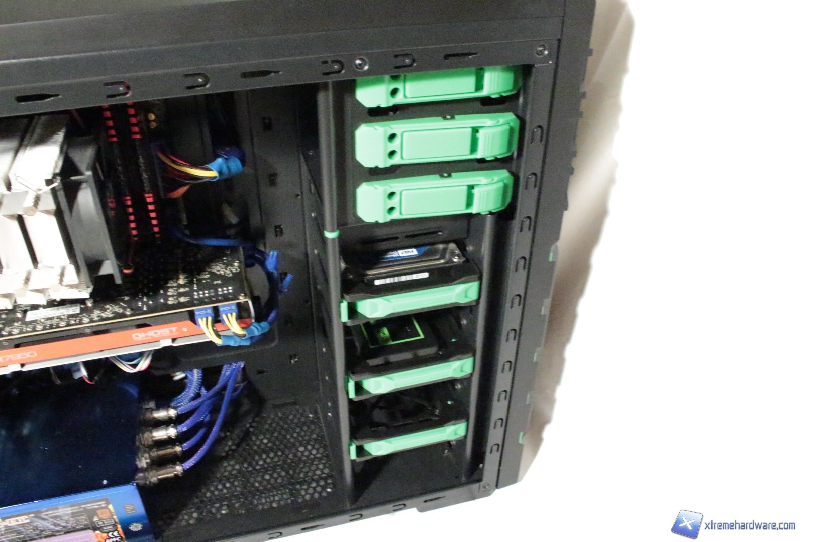 All’interno il nostro case ci regala abbastanza spazio per qualsiasi GPU. Anche a livello di design, l’Iron Soldier non si dimentica di quel tocco di verde presente all’esterno.