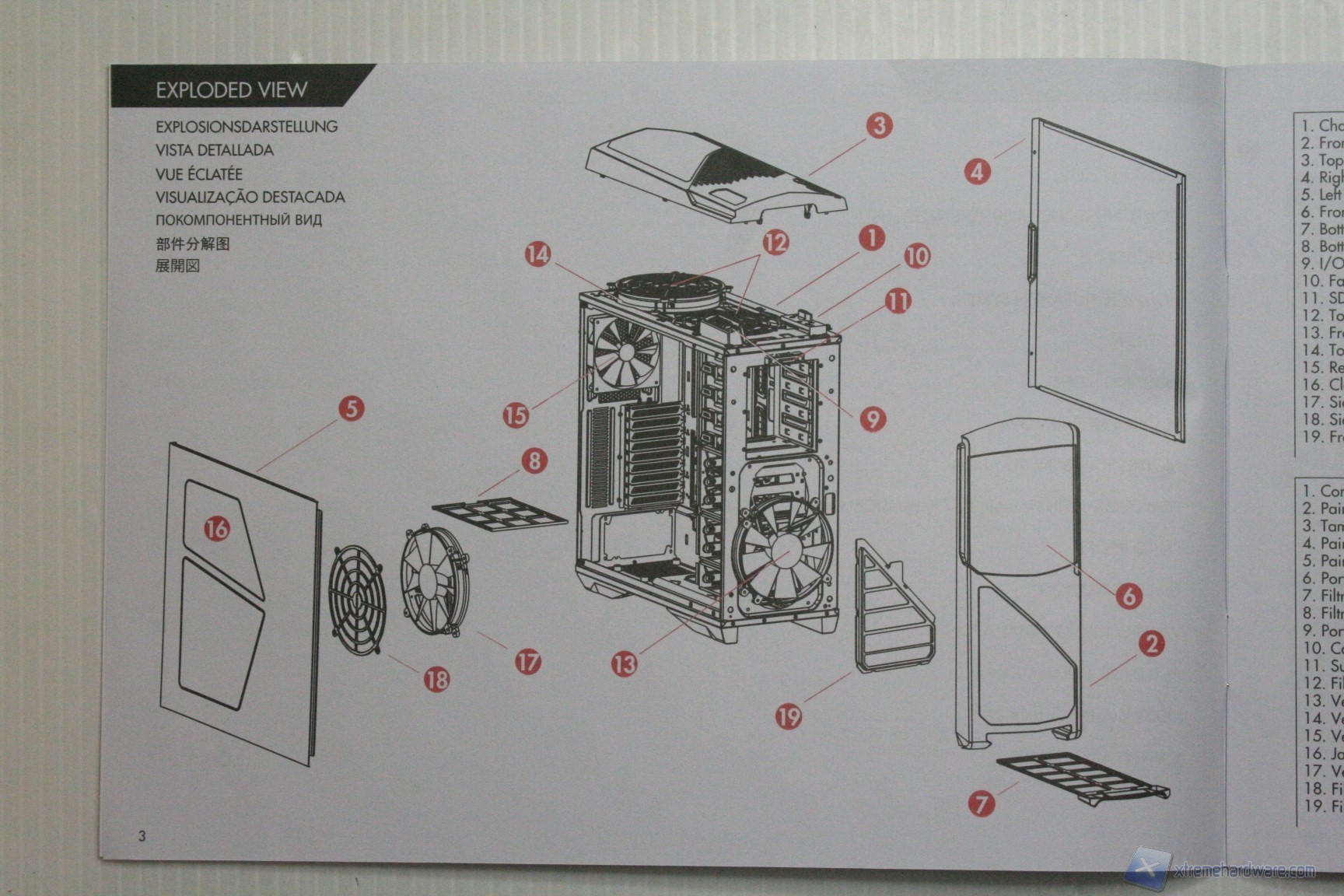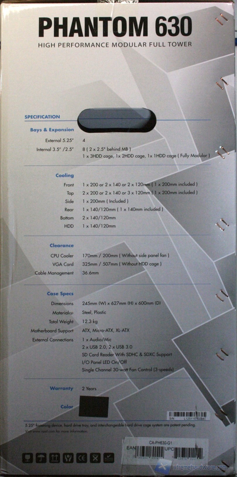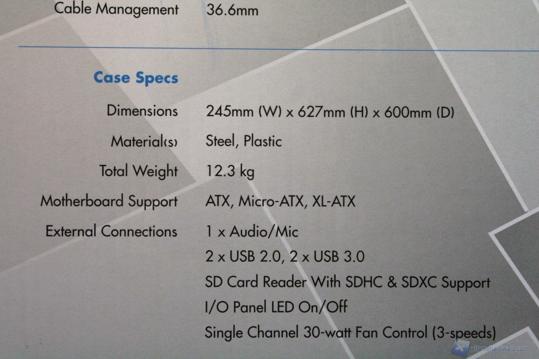 La confezione esterna è molto dettagliata, probabilmente una delle più dettagliate tra quelle viste fin d’ora. La finitura esterna è lucida e rispetta la normativa RoHS. L’imballo interno presenta però del classico polistirolo, che come qualità, sebbene sia valido per proteggere il cabinet, è peggiore del polietilene espanso (PET). Ovviamente, come la quasi totalità dei cabinet attualmente in commercio, all’interno c’è la classica busta di plastica antigraffio.