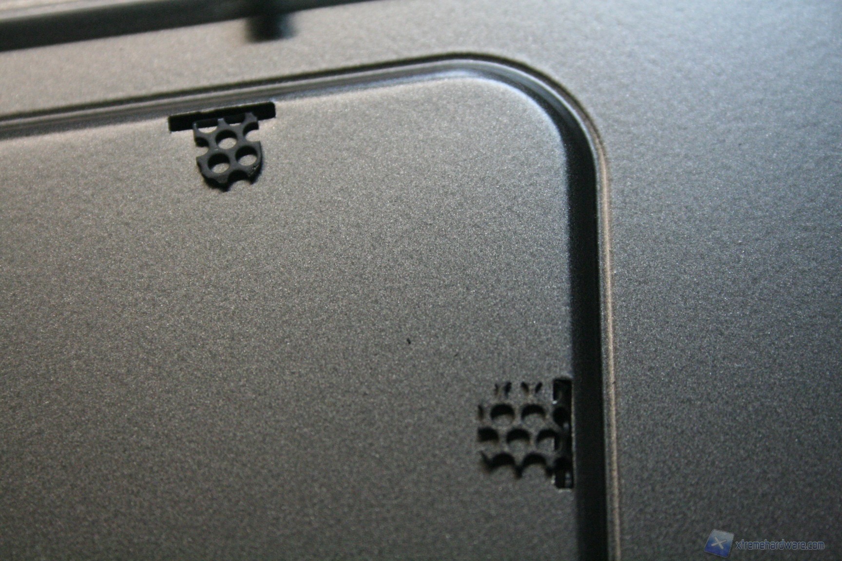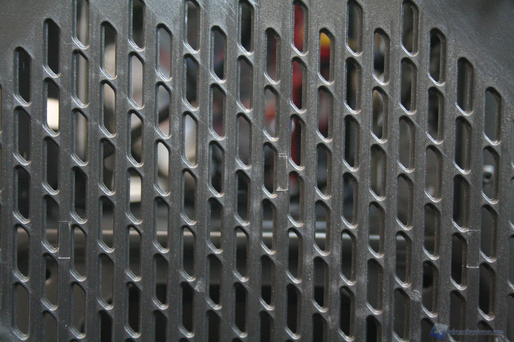 Sono presenti delle fessure di ventilazione solo nella parte sinistra, precisamente in prossimità della grande ventola da 200mm laterale, con filtri antipolvere preinstallati. Non è presente materiale fonoisolante e questo se vogliamo è un peccato, ma d’altronde date le grandi fessure di aerazione non sarebbe stato possibile fare altrimenti.