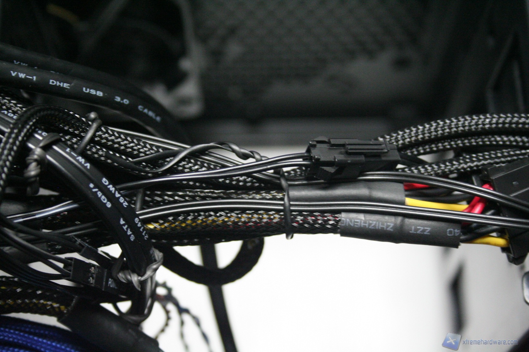 Il cablaggio posteriore, date le dimensioni ridotte all’osso, è ottimo; ciò è anche possibile per via dei connettori BitFenix Alchemy sleevati di colore Blu gentilmente forniti dal produttore.
