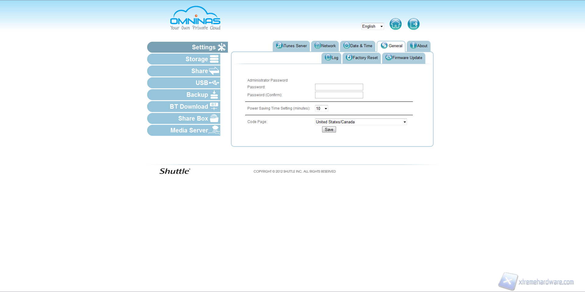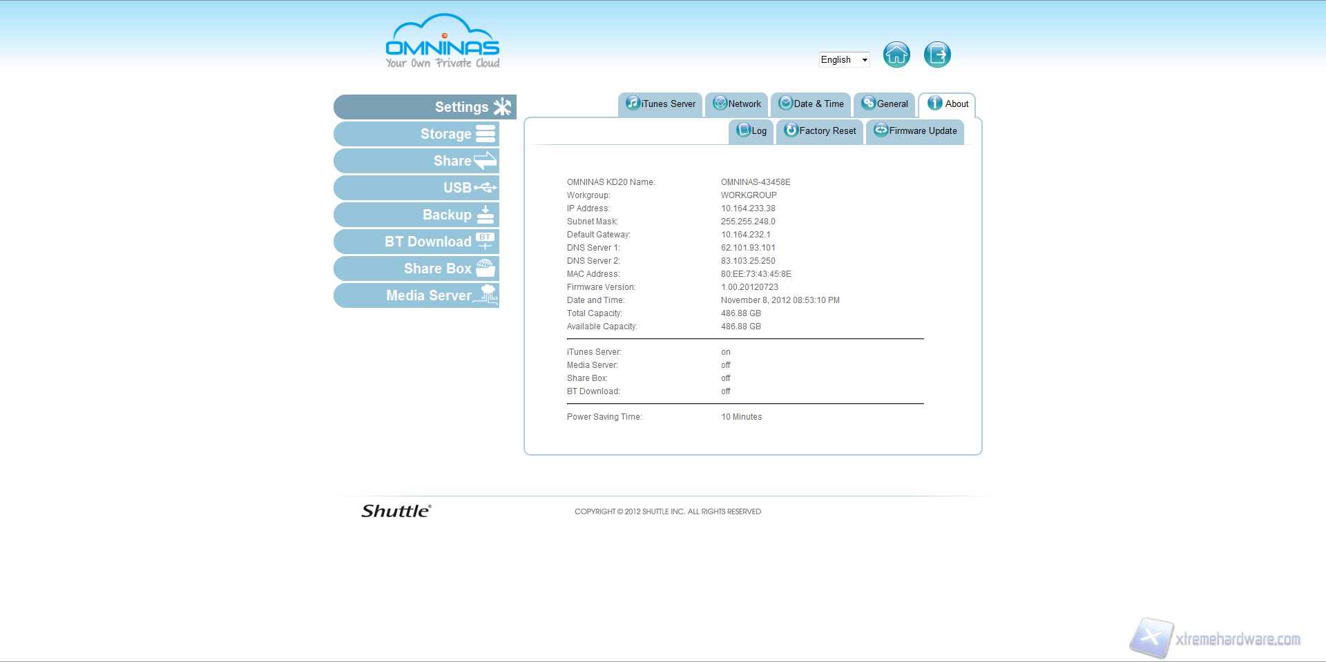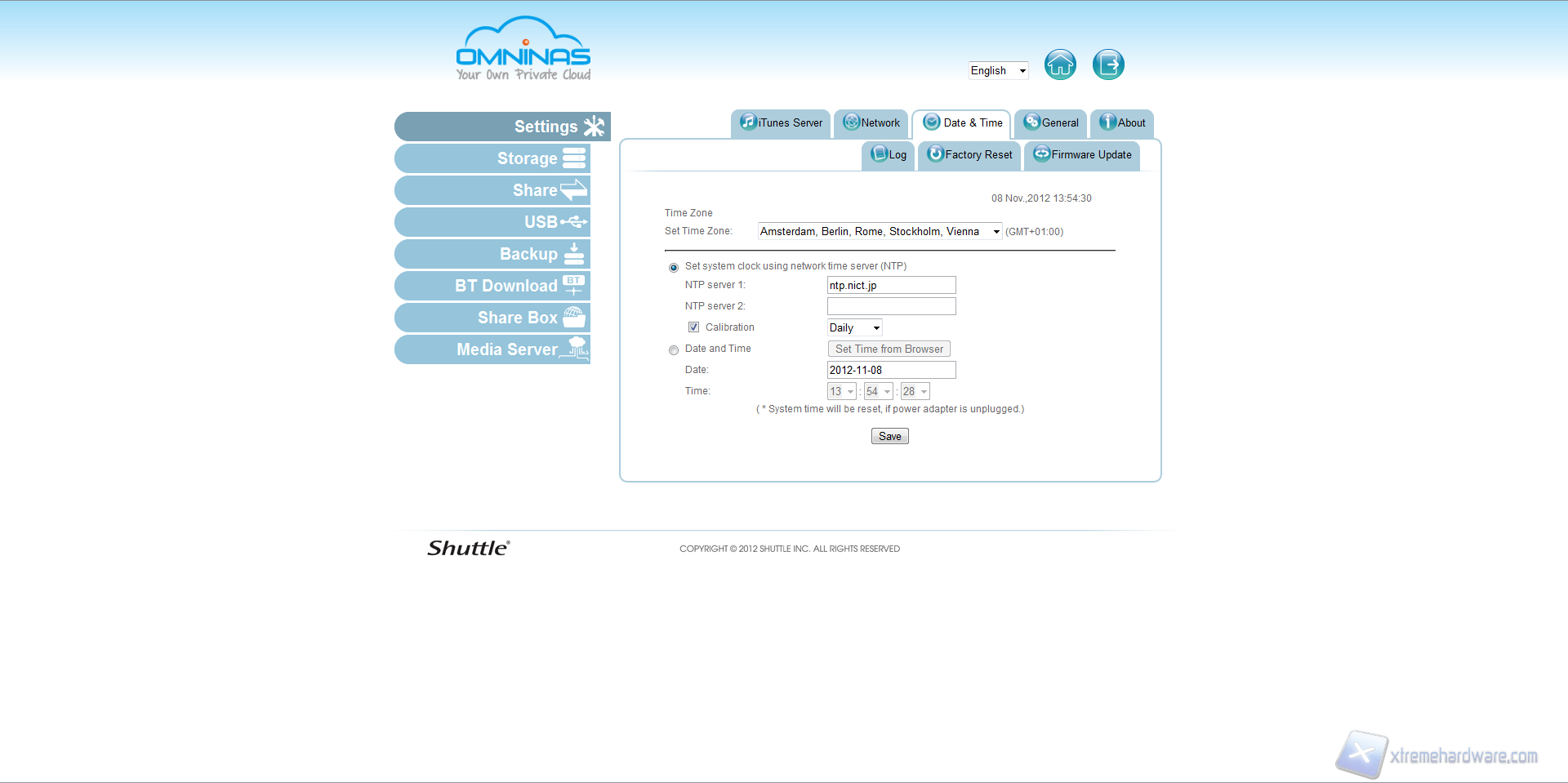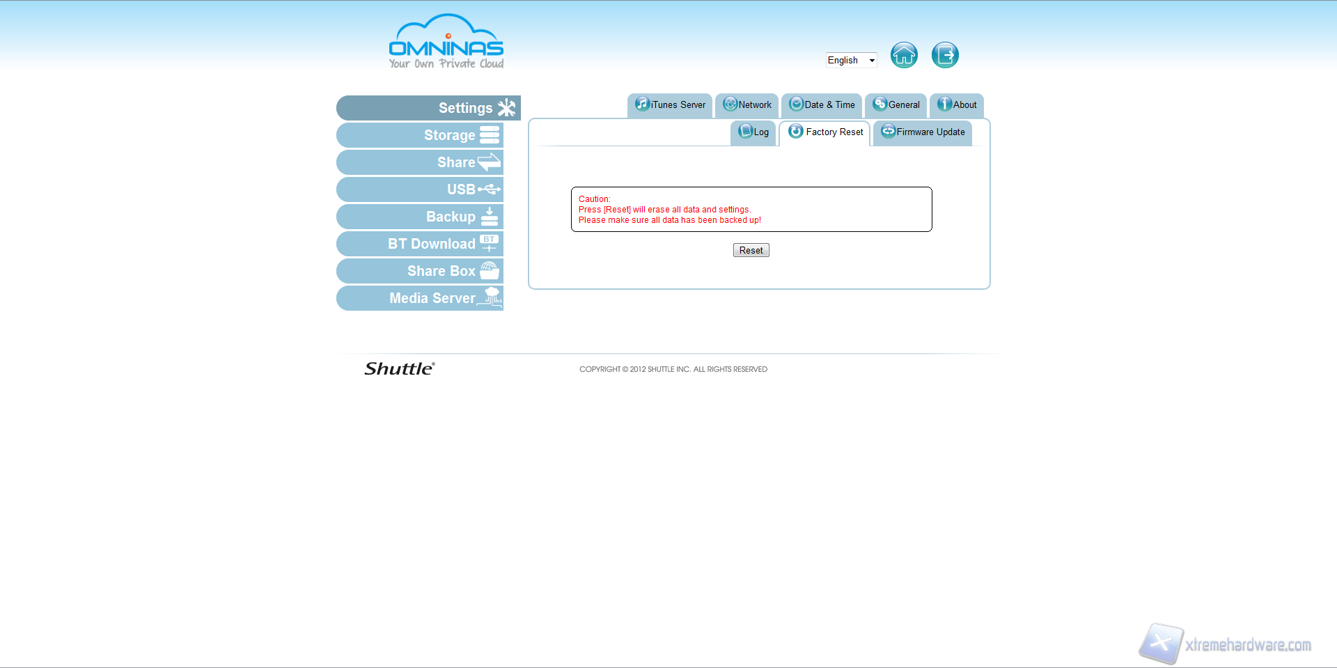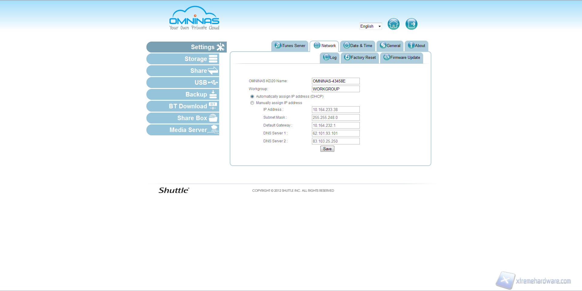 Shuttle OMNINAS KD20: l'eleganza del NAS, per tutti - Menù: settings